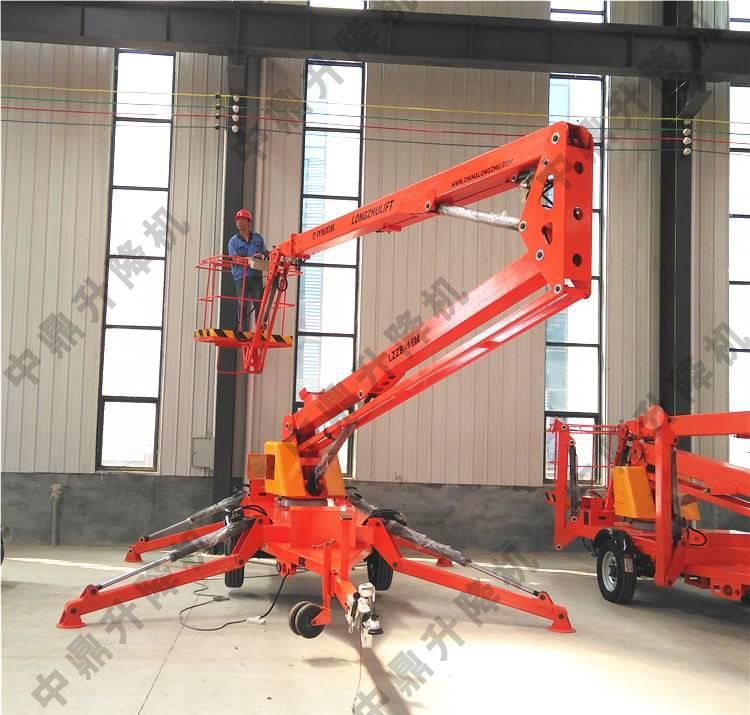 拖車折臂式升降機(jī):可以掛在汽車上,與汽車同步,適合野外高空作業(yè)。