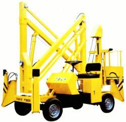 車載折臂式升降機(jī):把曲臂式升降機(jī)安裝在汽車上,利用汽車動(dòng)力驅(qū)動(dòng)升降。