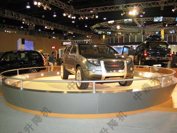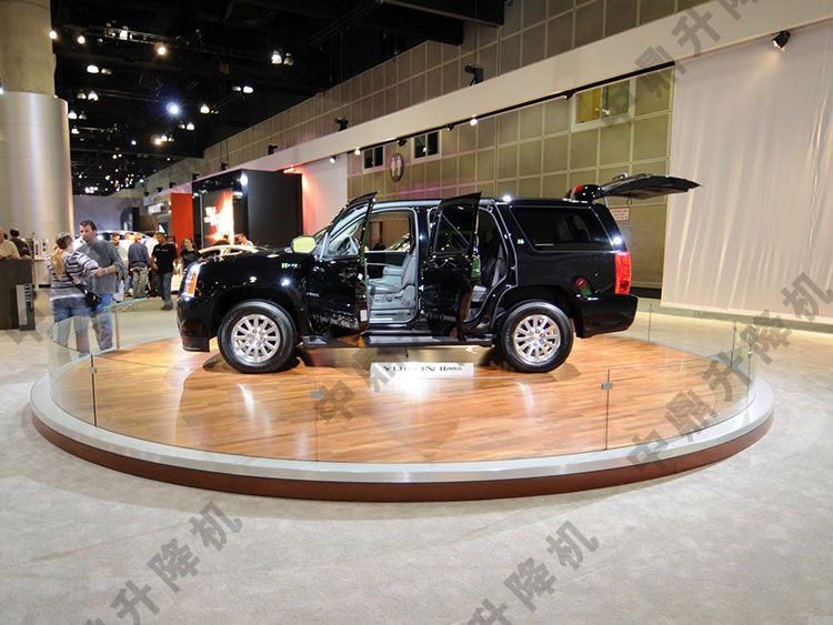 固定式升降旋轉舞臺液壓升降平臺汽車展示臺一般用于車展、4S店、汽車廠等場所。升降高度、載重量、臺面尺寸、使用材料等都可以根據要求定做。