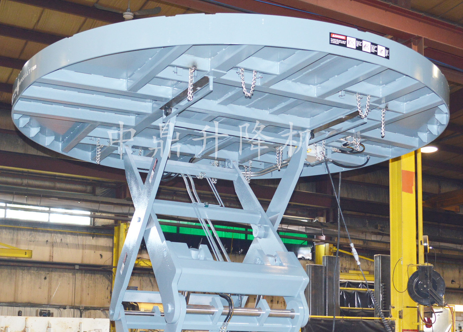 由于鋼包的形狀不規(guī)則,升降機(jī)的底座和平臺(tái)是定制的,以精確地適合客戶的鋼包。