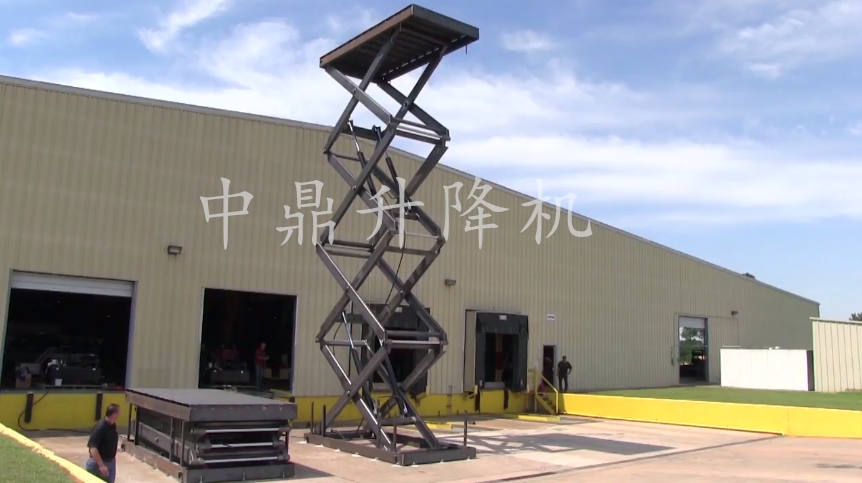 定制剪叉式舉升機,帶有四組垂直堆疊的剪叉,以滿足行駛高度的要求。升降機是坑式安裝并永久固定在地板上,以保持結(jié)構(gòu)穩(wěn)定。該設(shè)備可選配增