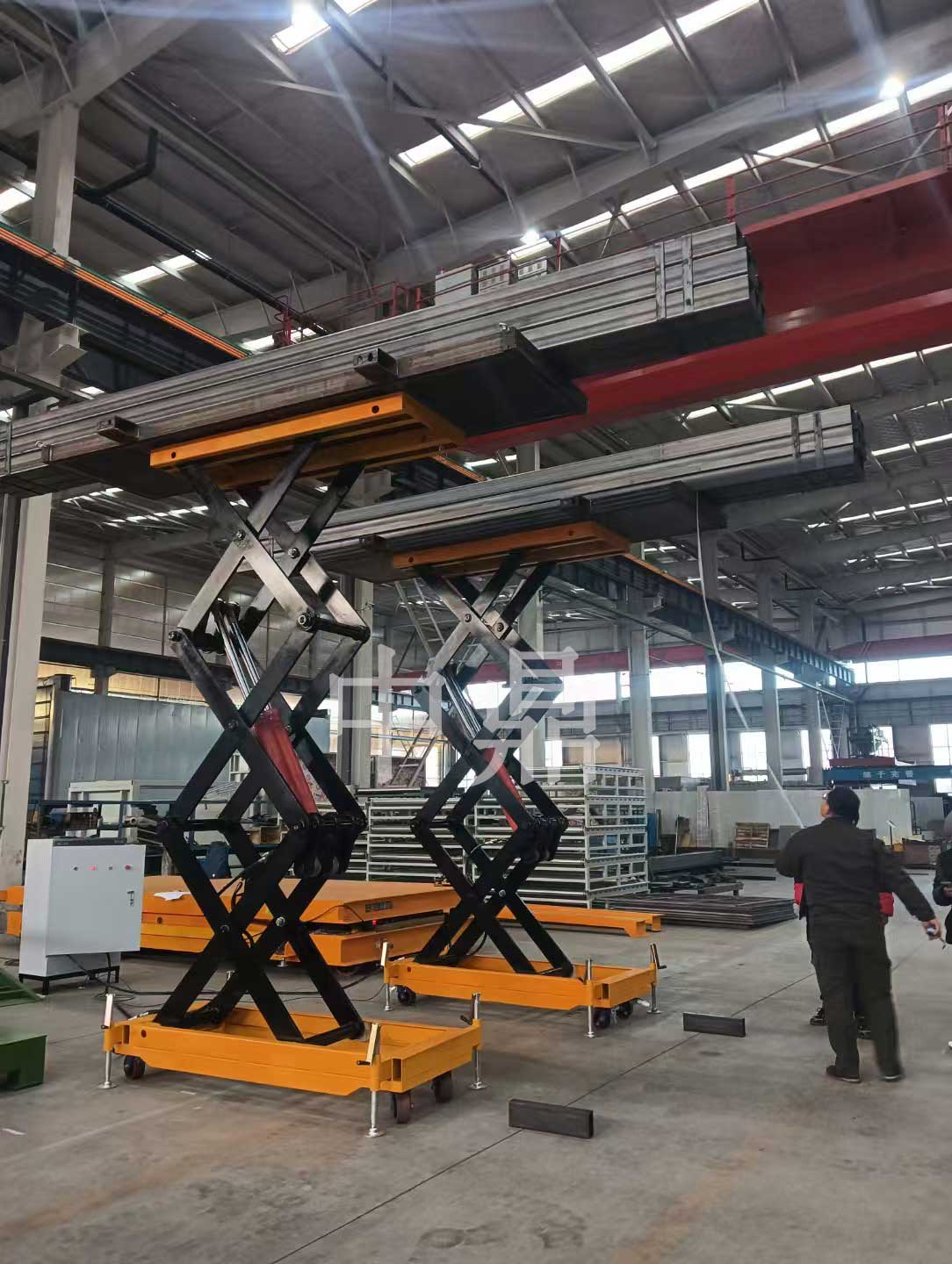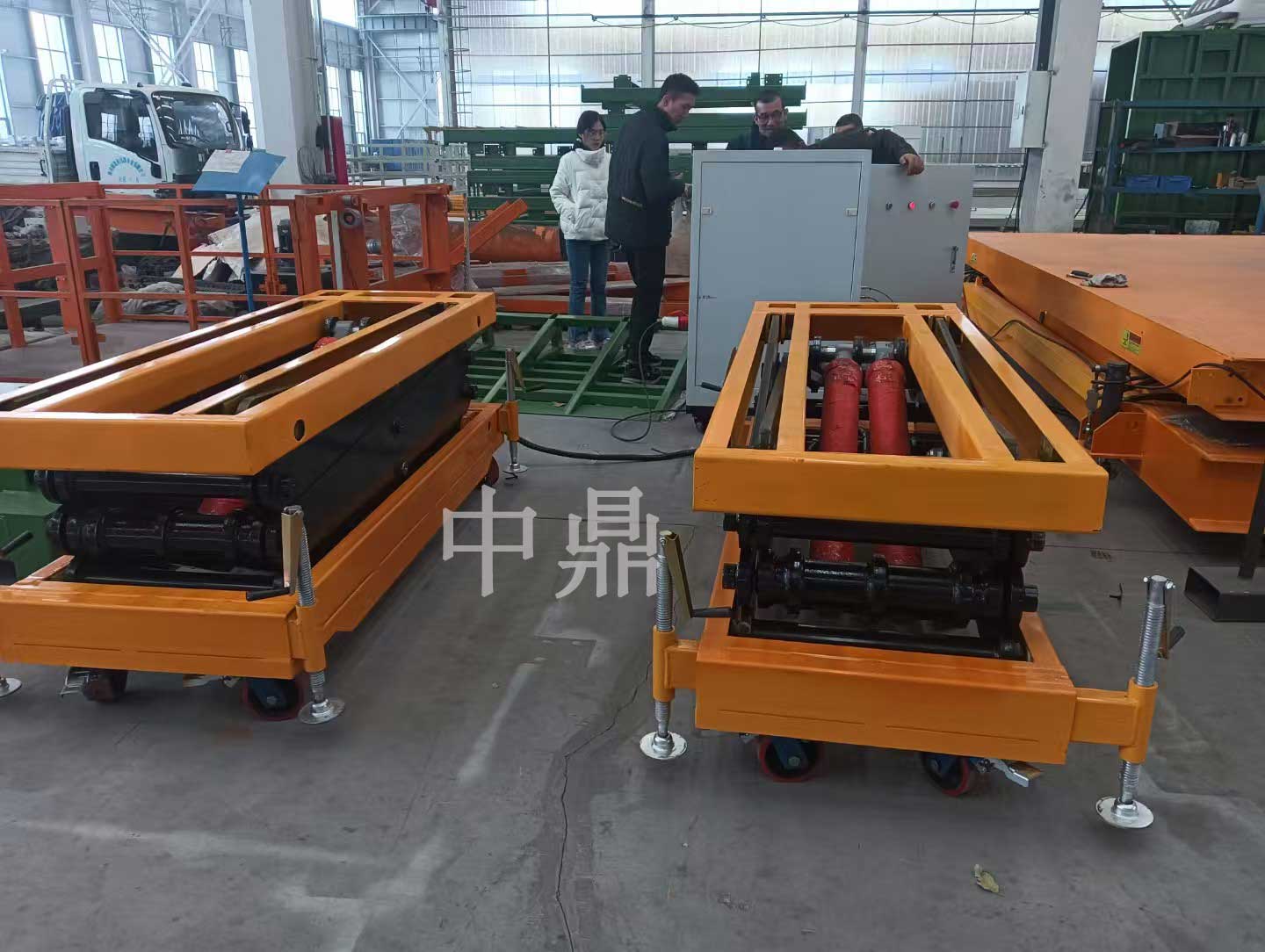 此設備設計為一個控制系統+一組液壓泵站+兩臺固定剪叉的結構實現平臺的同步升降,主要是為了幫助客戶解決同步抬升設備的問題。客戶的需求是希望兩臺剪叉同步升起,舉升物料到一定高度來作業。這樣的設計能夠減少人力作用,縮短工期,提高效率