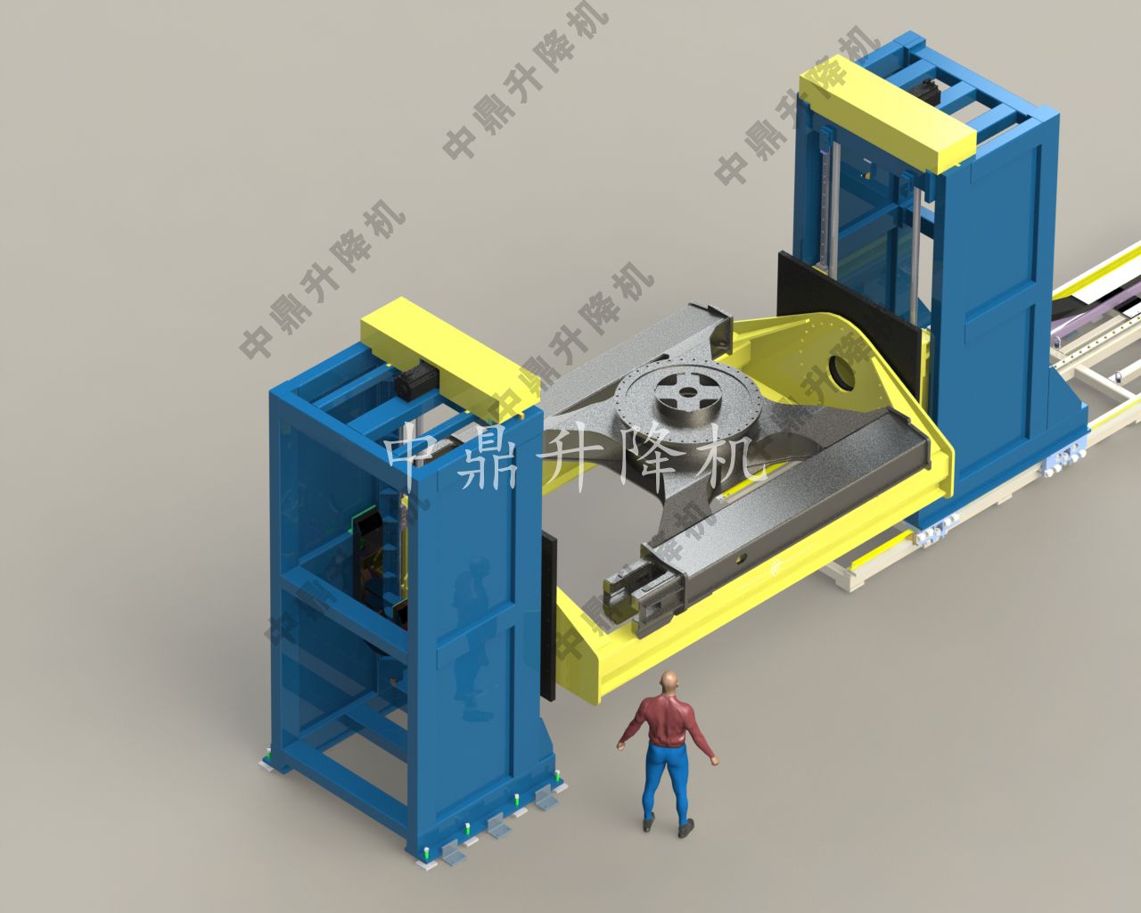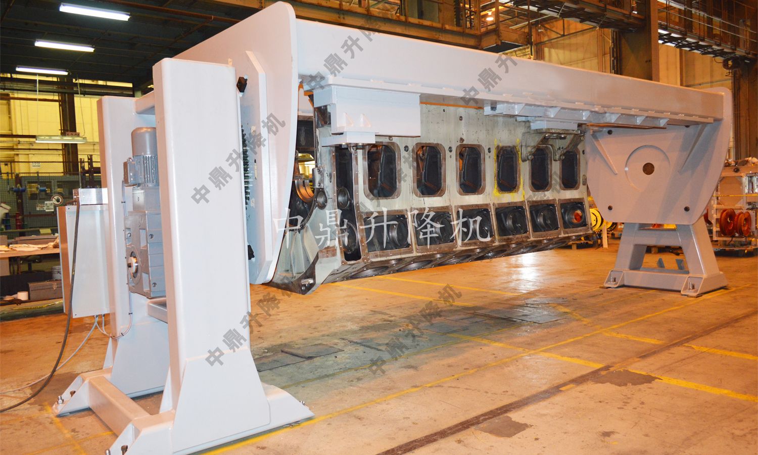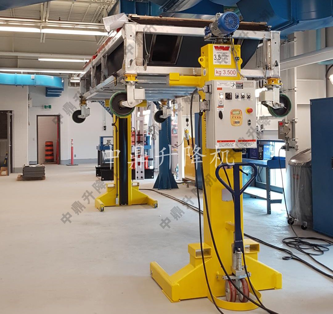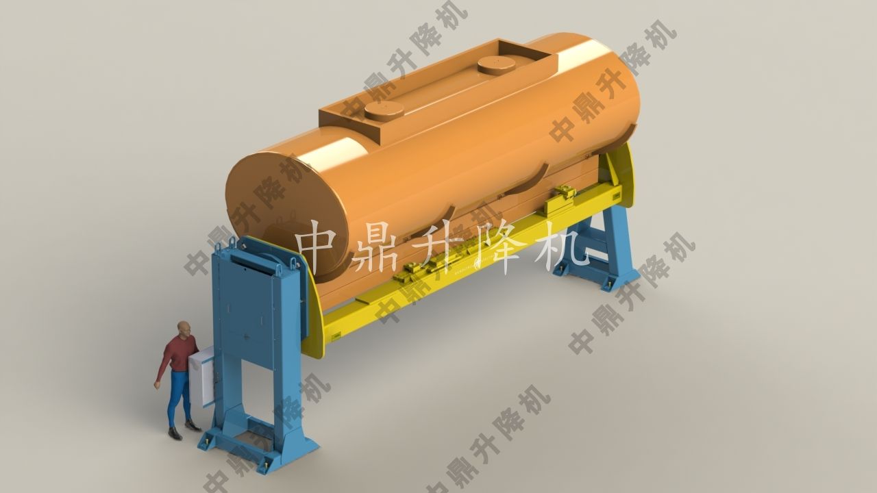 雙柱旋轉桅桿升降機——上圖所示為一家國際電力公司的發電設施定制的雙柱旋轉桅桿升降機,用于協助檢查渦輪機設備。由于零件或工具的物理尺