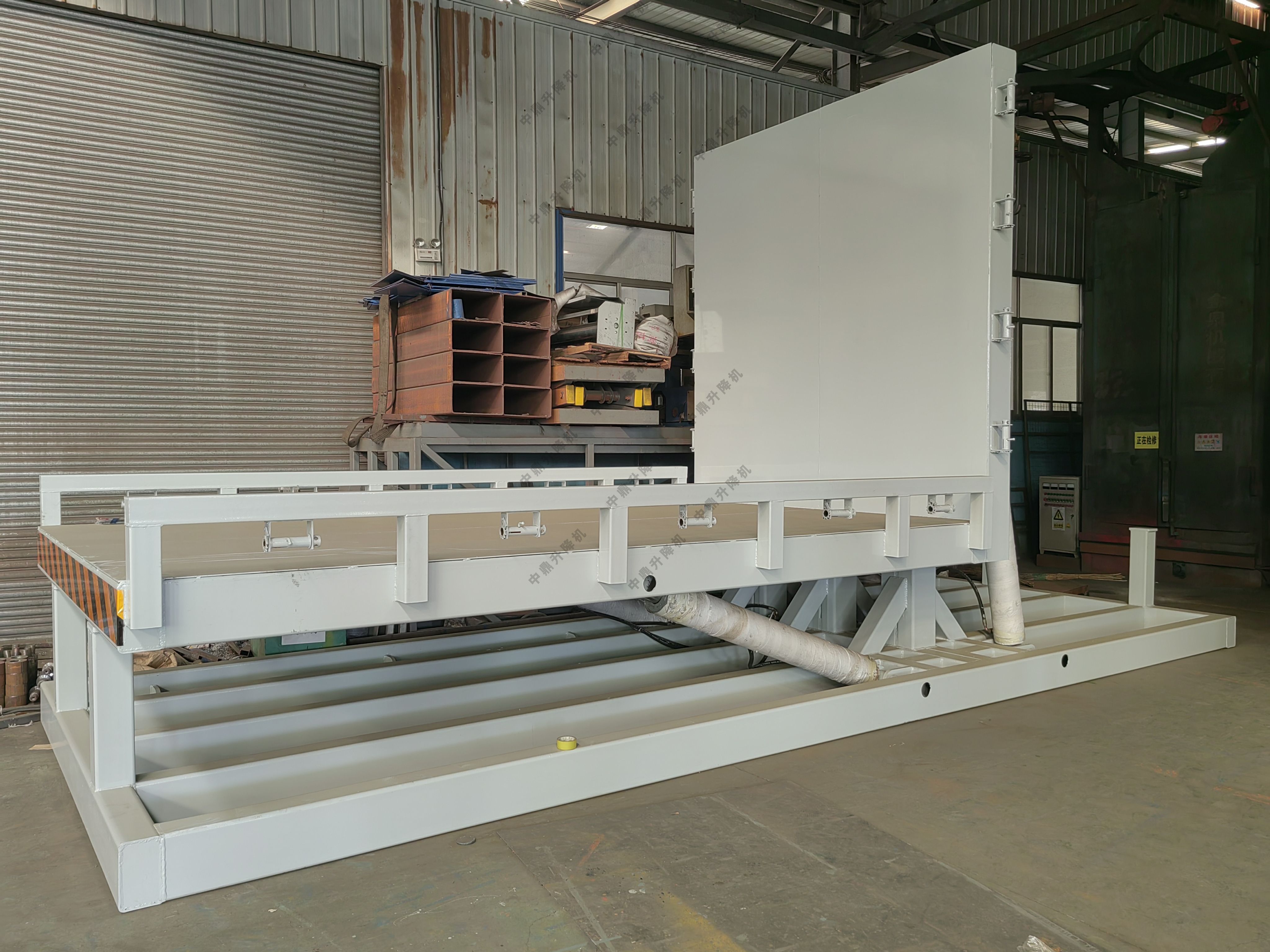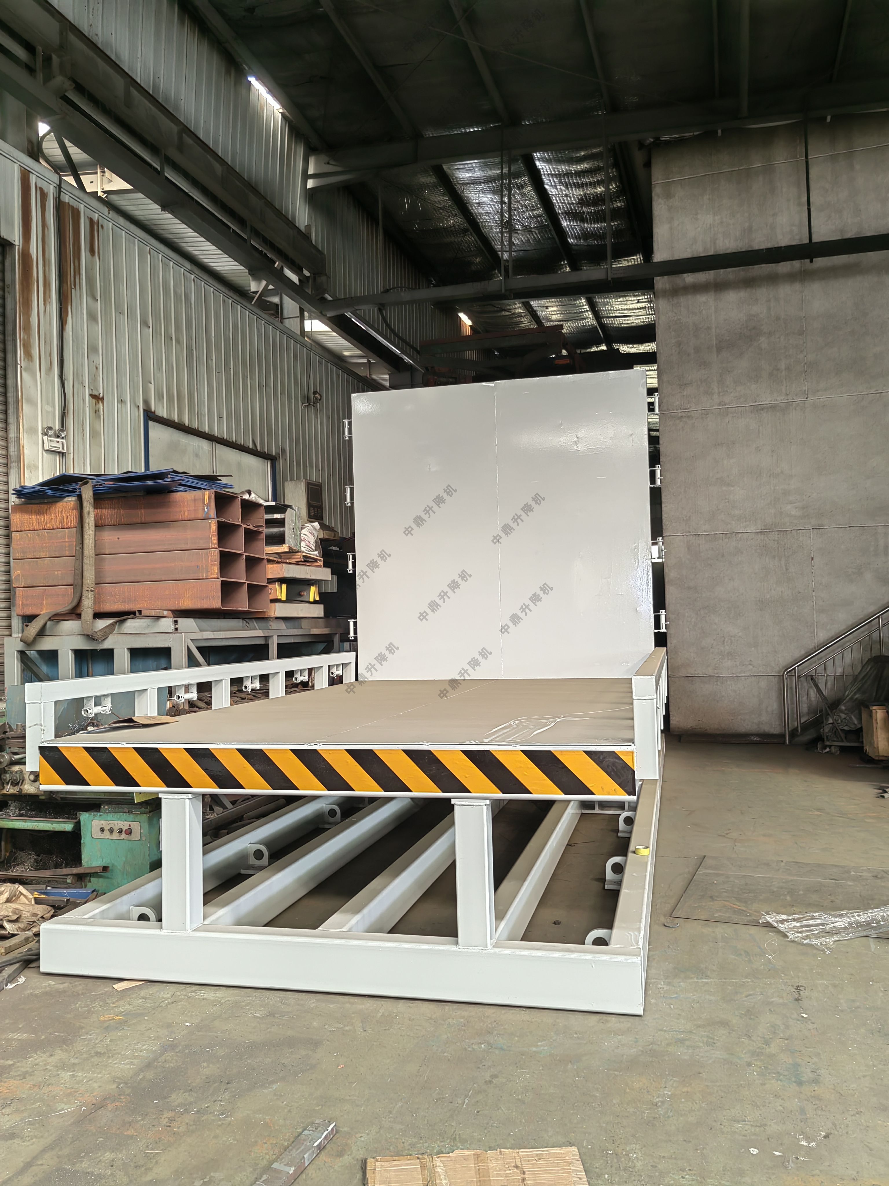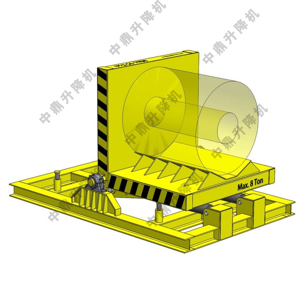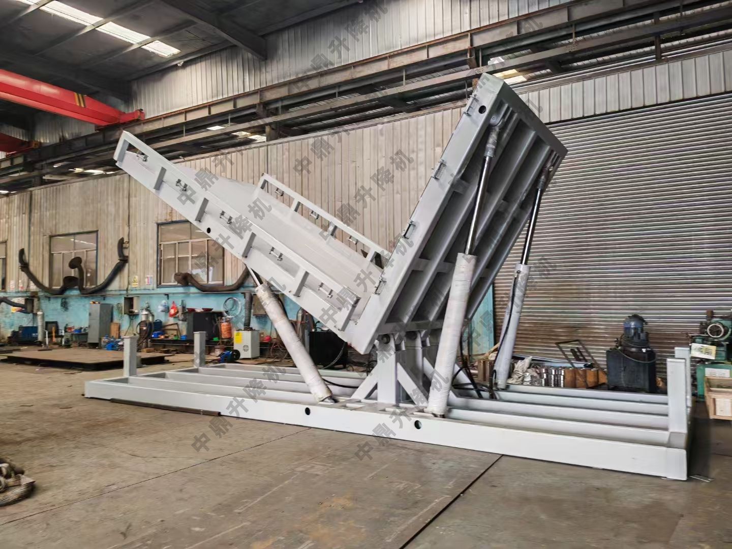 使用工況:行吊將制冷設備吊至翻轉(zhuǎn)平臺上,制冷設備由站立狀態(tài)翻轉(zhuǎn)90度后放置水平然后行吊吊走;翻轉(zhuǎn)臺面兩側帶有防護護欄,及固定緊繩器,可將產(chǎn)品用繩索固定,防止產(chǎn)品側向滑落到地面。