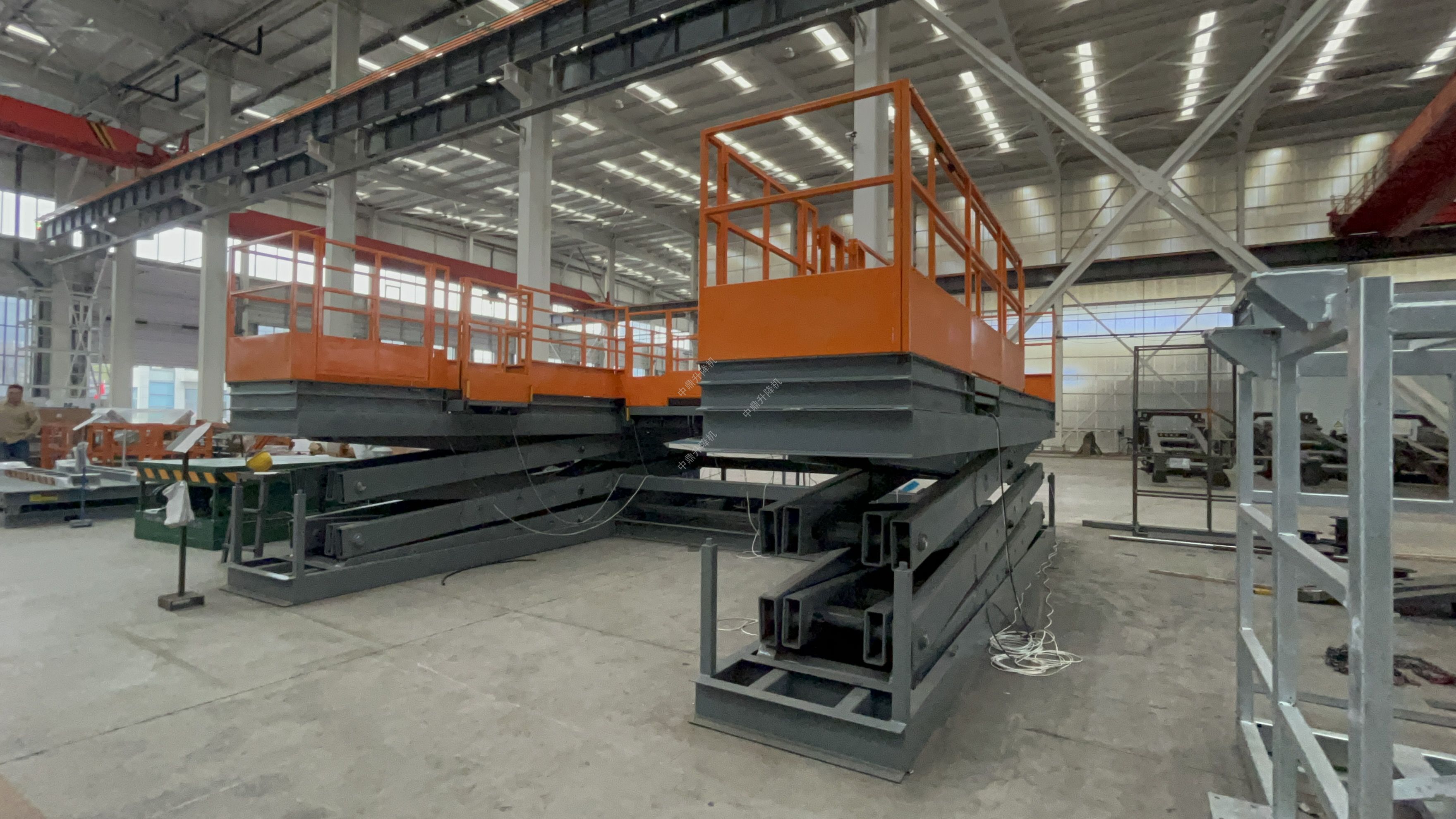 配備有4組剪叉同步升降,4組編碼器反饋升降高度,泵站使用比例閥控制流量,在滿負荷狀態下,每個角的偏差小于5mm。