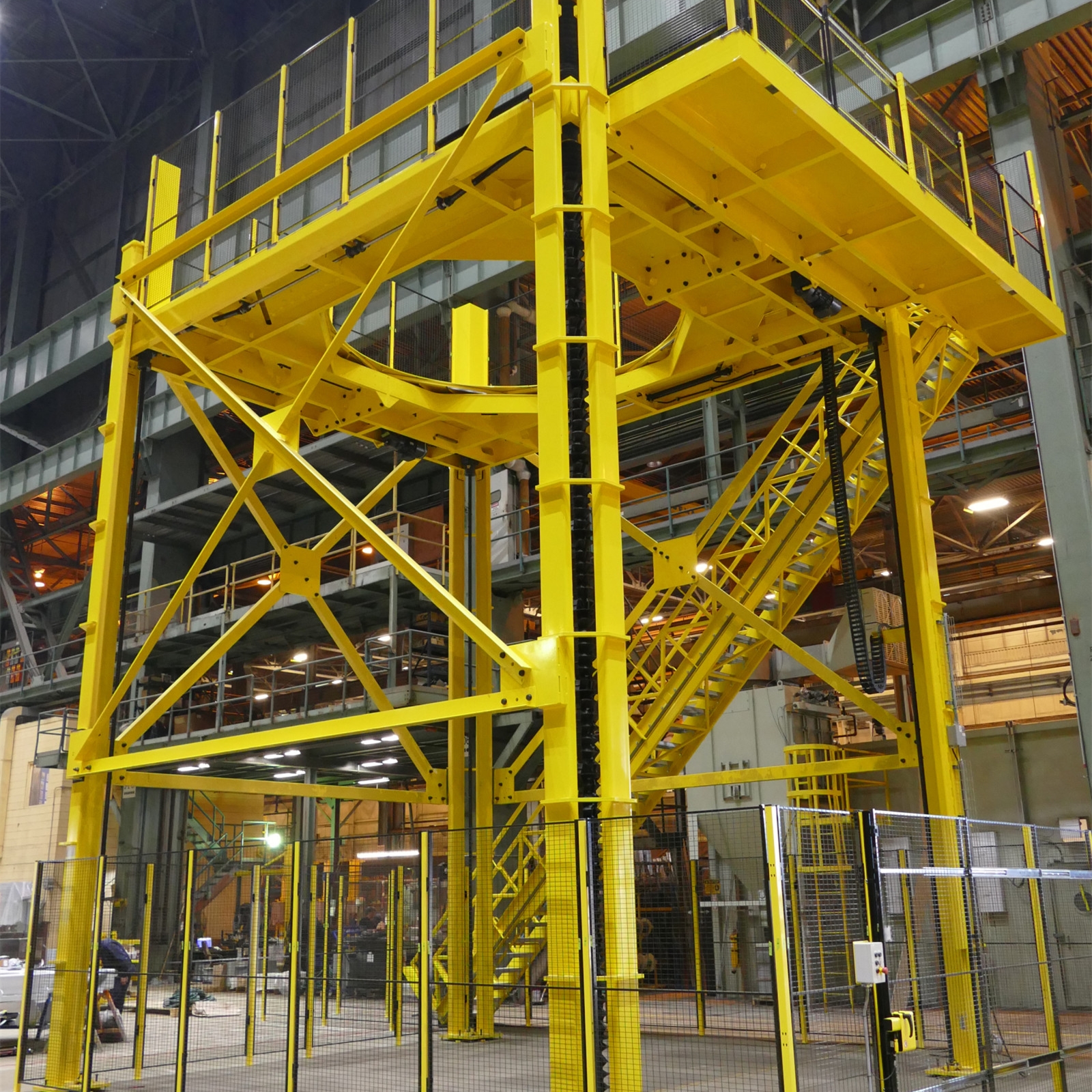 每個液壓驅動的坑式安裝的剪叉式升降機的平臺升降機,在每只腳下設置了帶有電纜傳感器的平臺下方的升降機,